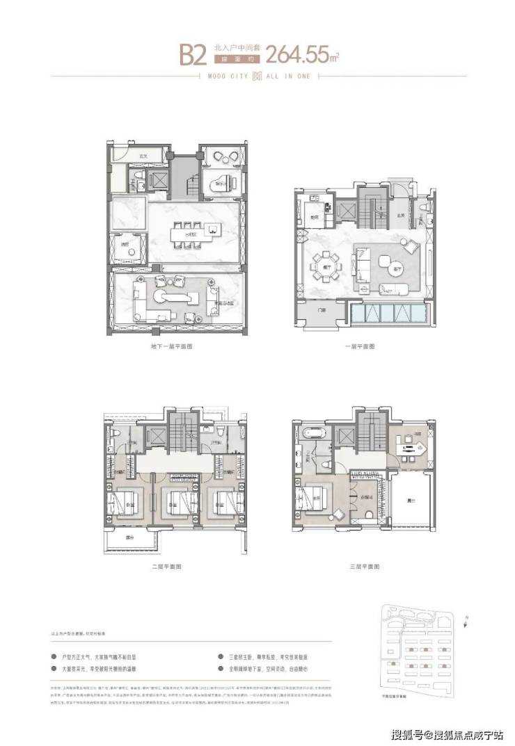 地上三层、地下一层的别墅设计,以及南北双花园的配置,增加了居住的舒适度和私密性。