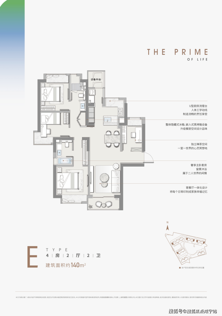 建面约126㎡三房56套、建面约140㎡四房60套。