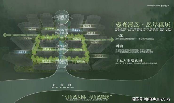 中建山水雅境并没有采取常规操盘思路将景观集中在社区中央,而是规划「一环两轴十五大花园」的景观肌理。