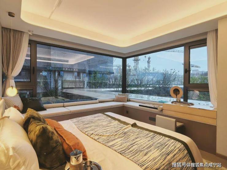 为放大100㎡户型的空间感受,主卧设计270°景观飘窗,可以俯瞰小区花园,整个户型将飘窗做到极致,赠送的空间价值非常惊人。