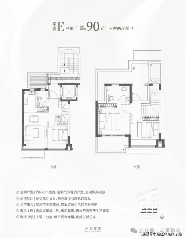特别是这个E户型,建面仅约90㎡,对于想住叠加但预算有限的购房者来说,面宽约6.45米,上下动静分离带,是个不错的选择!