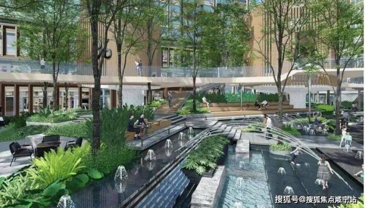 值得一提,商业景观有三大主场景, 分别为森感公园、九曲花街、花园大道。其中森感公园里约 40%都是超过十米的大树,绿意盎然。