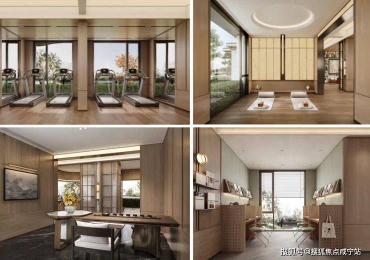 4#楼楼下的活力社交场,有氧健身、瑜伽室、品茶区、日落咖啡吧等功能空间。