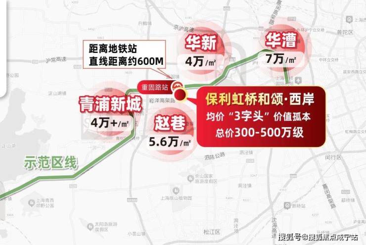 反观坐拥重固站核心区位的保利虹桥和颂·西岸,目前仍是该沿线少有的“3字头”的价值孤本。