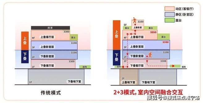 彻底抛弃传统上叠“顶层+阁楼”的鸡肋设计,上叠为3-5层全标准层高配置: