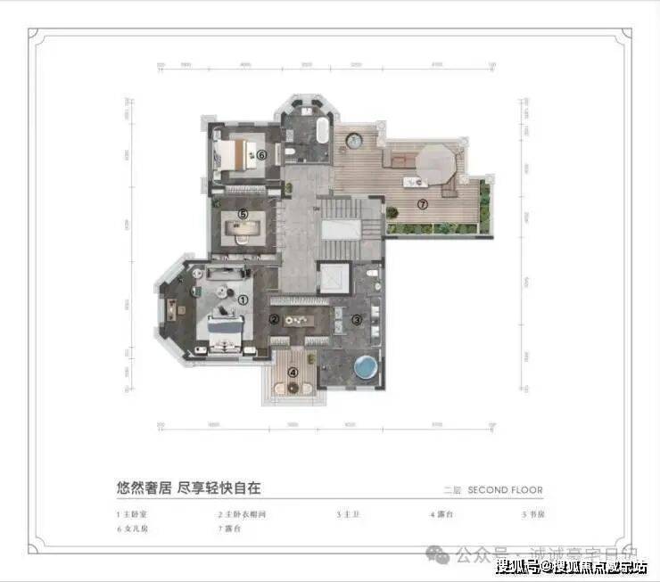 D户型主卧连接约18㎡阳光露台,送给太太一年四季的空中花园;C户型次卧连接约50㎡宽景露台,送给孩子的空中游乐园。