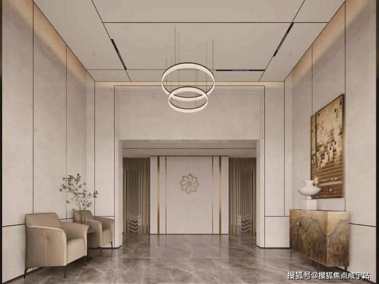 再次,项目首层大堂与电梯轿厢品质感拉满。