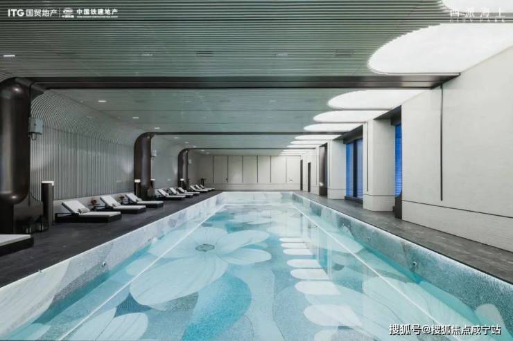 25x8 半标无边界泳池,池底运用了繁花马赛克,墙面与地面均使用大理石,天花板则运用发光玉石与造型艺术板打造,背景墙为LV同款定制双C造型艺术板,艺术造诣拉满。