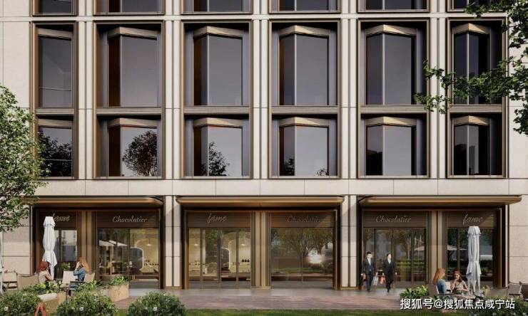 材质上,采用大面积玻璃+铝板+石材,配以雅奢香槟金暖白配色,低饱和度,质感高级,尽显品味!