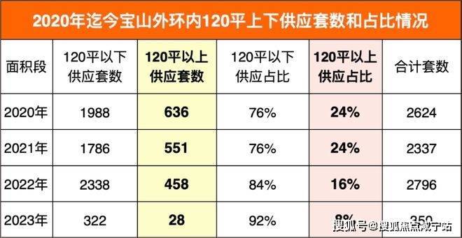 宝山中外环2020年至今的120㎡房源的占比:非常稀缺!特别今年以来大户型只有约8%,物以稀为贵,将来进入二手房市场,会更占优势!