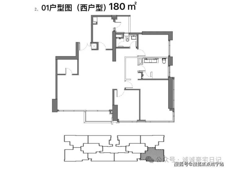 标准层建筑层高3.3米,得房率约77.4%,三梯四户,使用私密性较好。