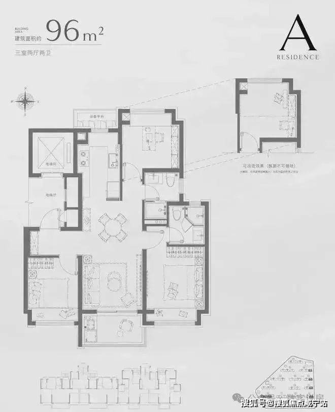 建筑面积约96㎡3房 经典飞机户型 精致进阶