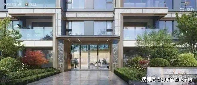 采用香槟金铝型材与灰色石材的入户大厅外墙,香槟金色弧形铝板装饰的门头雨棚,搭配大玻璃面更加通透近人,营造颜值与尊贵并存的归家体验。