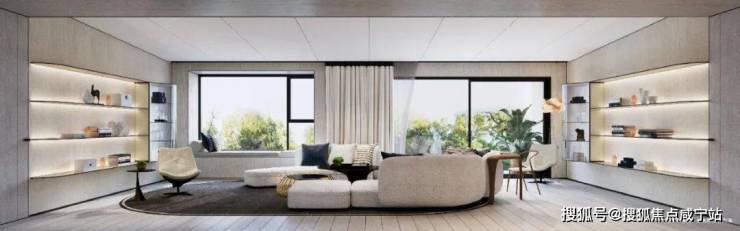 景观设计更向往自然纯粹的优雅和从容闲适的内心,营造七大主题景观带。室内设计,秉承摩登东方的理念,设计以人、生活为出发点,从空间本体和情感层面都回归生活,270度环幕采光,开放式会客厅设计,兼具尺度感与功能性。