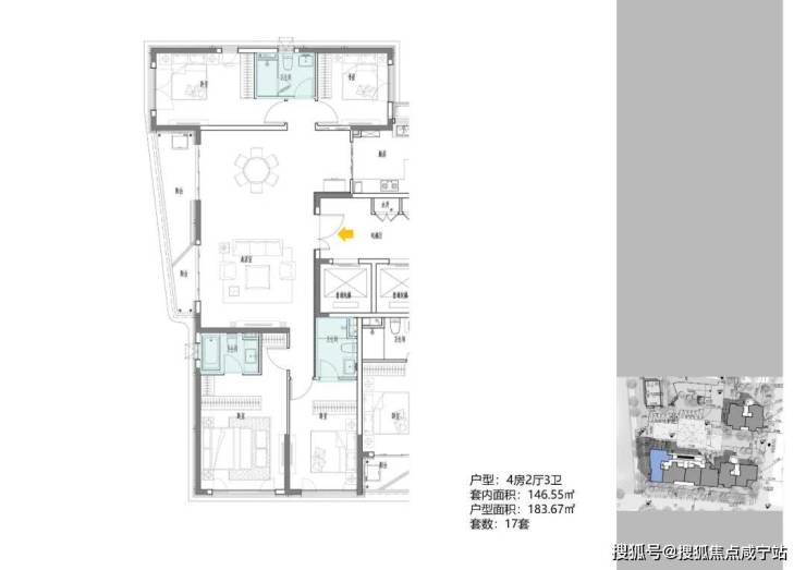 B地块容积率2.94,只有一栋小高层,共67套房源,产品建面约108-148㎡。