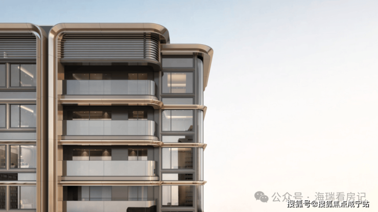 绿城黄浦ONE的建筑外立面采用海派现代风格,蓝灰色玻璃、仿铜色铝板、深色石材搭配,毫无疑问,这就是目前上海立面中更好、更昂贵的用料!