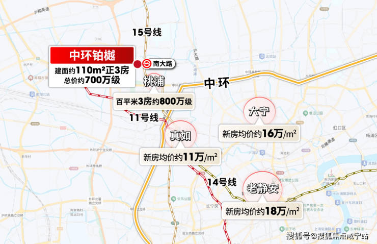 而一旦买到中环铂樾,你将享受到的地段是:距离南大路站直线约300米真地铁房,上车后1站8万+桃浦、5站11万+真如、7站约14万+内环。