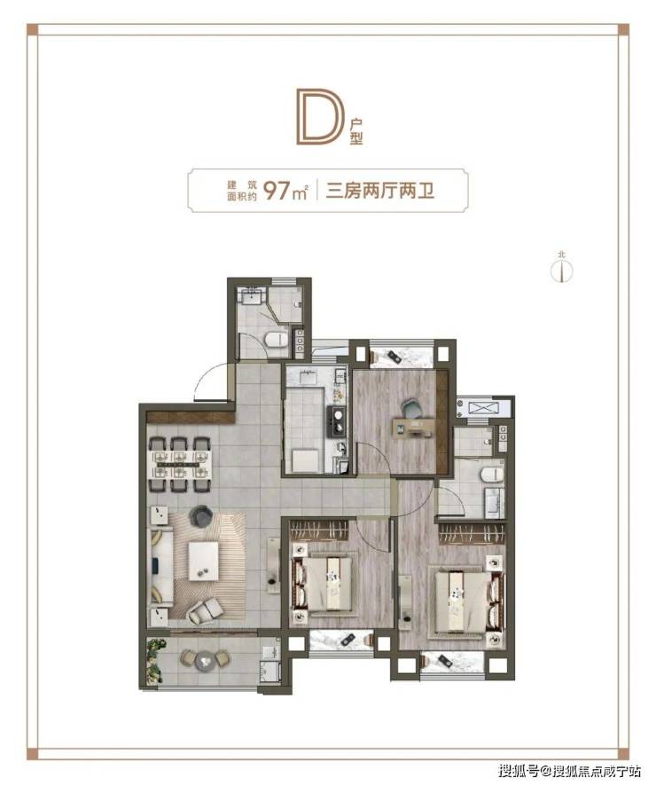 实话讲现在的户型都大同小异,户型图一贴您自己也能看得懂。但项目这个建面约97㎡3房只有去现场体会,才知道它的好。
