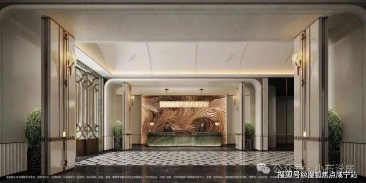 首先,会所的入口设计奠定了整个空间的艺术基调。实景中,地面常采用天然石材的拼花工艺,不同色调的石材精准对缝,形成简洁而富有层次的几何图案,彰显低调的仪式感。
