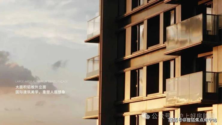 现代典雅立面,灰色搭配香槟金的色调,彰显不同建筑审美,外立面为品质铝板+玻璃幕墙,局部干挂石材和保温一体板,通过数控切割、精度弯弧、手工焊接、打磨抛光、七重清洁、烘干喷漆、高温定型等过十余步精细工艺,是高端住宅里高于行业标准体系的立面铝材。