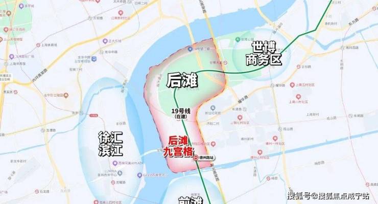 后滩九宫格北接世博文化公园、南邻前滩,西面隔黄浦江就是徐汇滨江,区位非常好,且是黄浦江核心段硕果仅存的滨江住宅区。