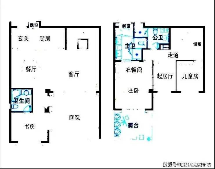 户型图一二层叠拼户型:建面约170㎡