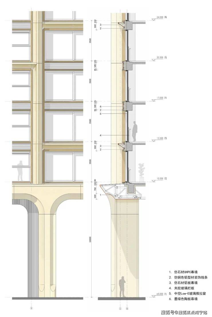 建筑立面采用UHPC、仿石铝板与陶瓷板等材料,景德镇定制的青色釉面陶板,融合传统“雨打青瓷”美学与现代工艺,经由当代幕墙系统呈现,构筑东方肌理与西方理性之间的深度对话。