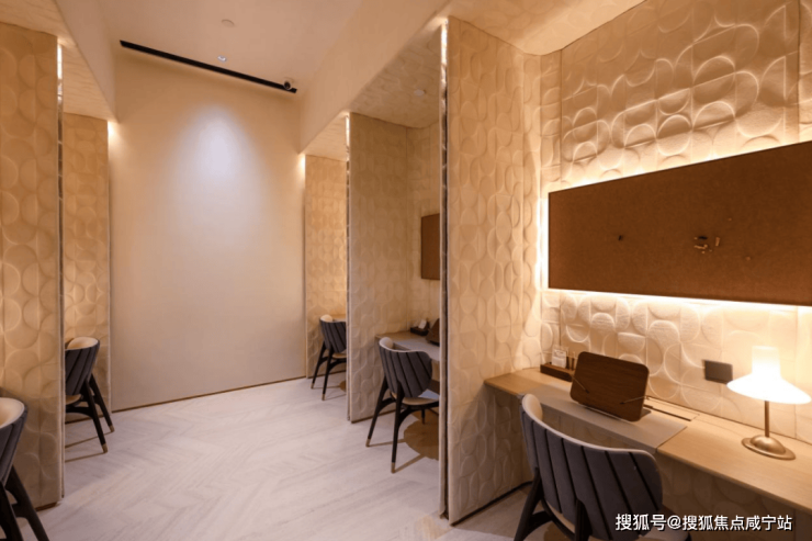 健身房的一大亮点是延续了项目对“她享主义”的设计,除了传统健身器材外,还打造了女性训练区,不仅设计风格更柔和,专属女性的拉伸区也更加复合女性健身习惯。