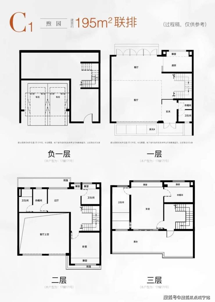 建面约195㎡的C1户型,尺度更加惊人,墅居体验堪称“庄园式”!