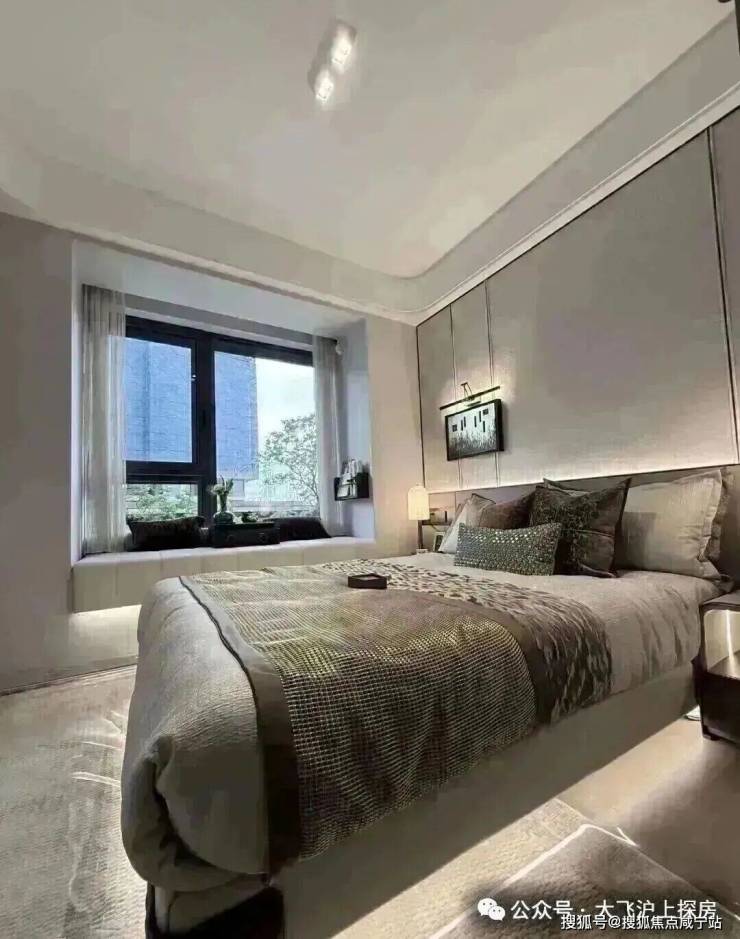 尤其是主卧大套房安排上独立衣帽间+独卫,配上270度的转角飘窗,一扇窗就是一幅流动的四季自然画。
