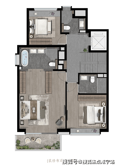 并且主卧还是双台盆+浴缸+淋浴+衣帽间+阳台,舒适度拉满!