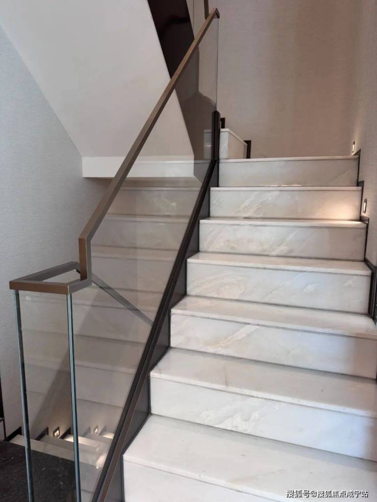 楼梯地面则为皇家白玉大理石,其质感将整个空间的品质与艺术性拔升了一个Level。