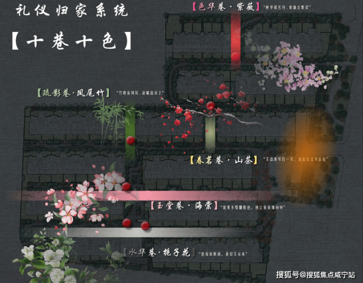 第二重巷门,项目在内部设立了十巷十色,每个巷道都运用了山茶花、海棠花等各类绿植。