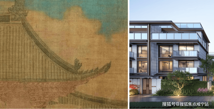 左北宋名画《瑞鹤图》,右润雲金茂府效果图