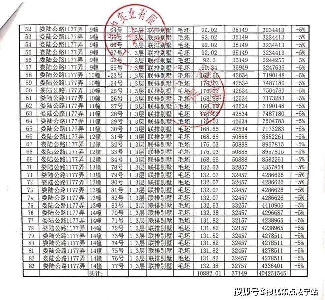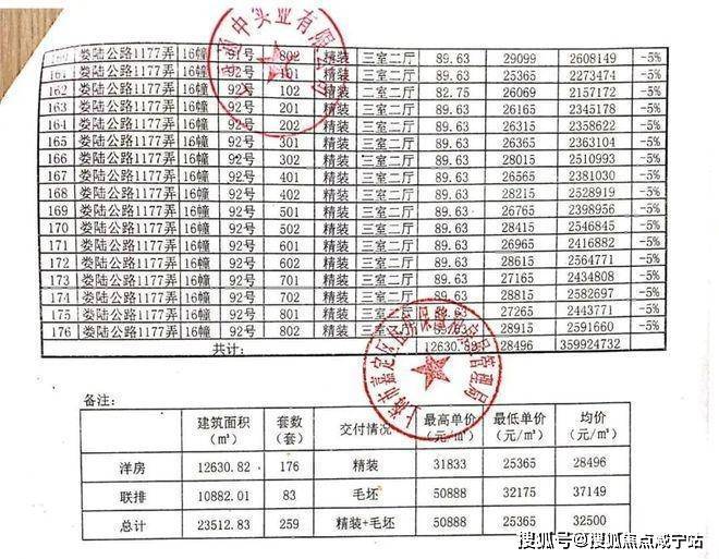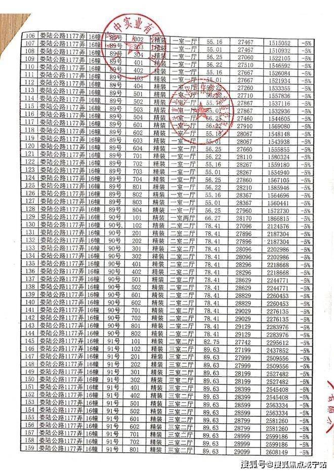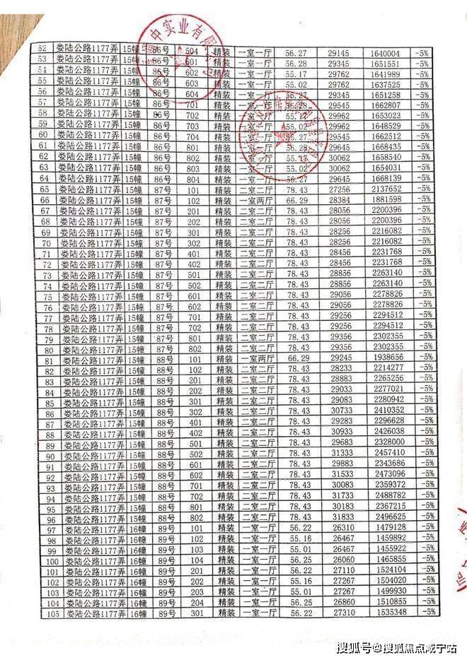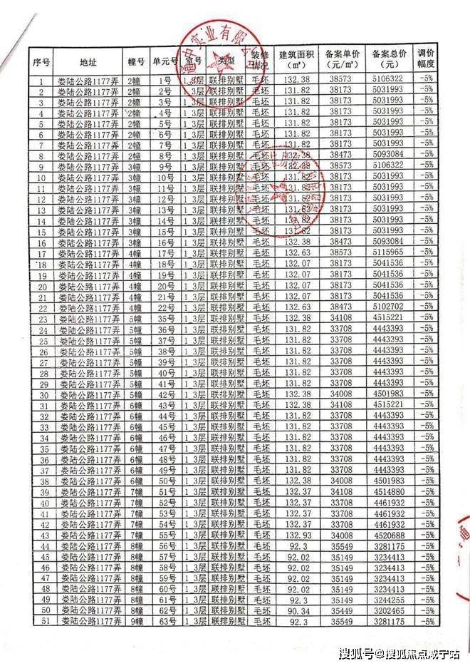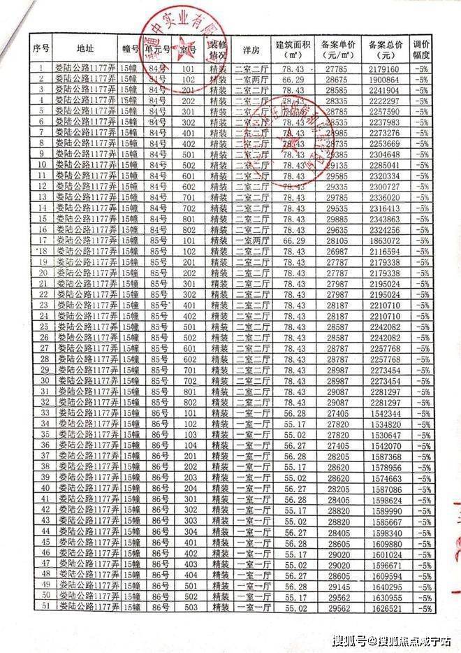 一房一价表: