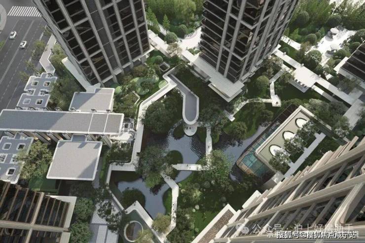 在景观方面,项目内部设置约3500㎡下沉庭院,地下通过坡地自然过渡至地上园区,在核心景观区,通过约6.6米超高架空与6.3米下沉庭院,打造约13米高差的全维森境体验。