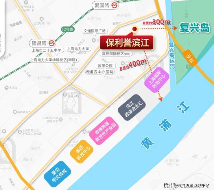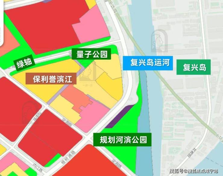 保利·誉滨江与复兴岛直线距离仅约300米。