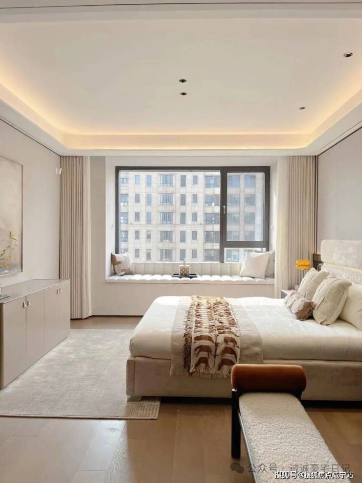 ◎面宽约4米主卧套房:配备南向观景飘窗、独立卫浴及收纳衣柜,在慵懒居家时,在阳光的挥酒下,勾勒出生活的情浓与舒适