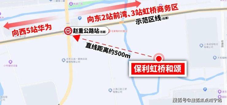 从项目所在的赵重公路站(在建)出发,2站前湾、3站虹桥商务区、5站华为;并能在虹桥火车站换乘2号线直达市中心。