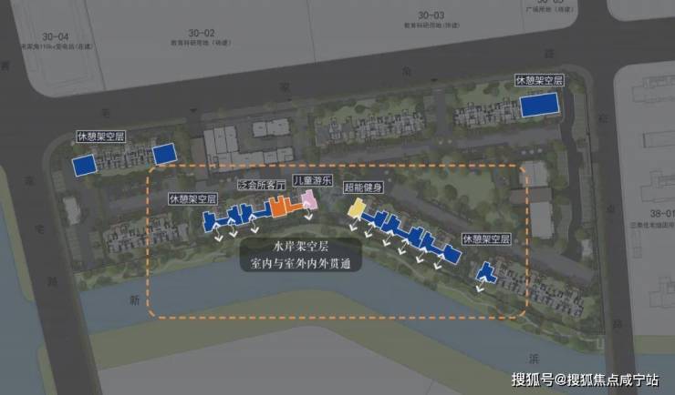 项目南向临河,为了更好发挥水岸优势,沿河设7户架空层,把河景最大程度引入社区,达到了室内与室外视线的贯通。