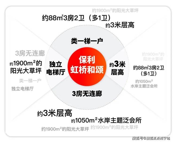 如果你预算300万级,保利虹桥和颂就是当红之选,外部有示范区线(在建),社区自带商业打造高级烟火气,解决基本生活需求,内部户型更是标配类一梯一户、独立电梯间(建面约75㎡外),把市中心高端大面积产品才有的尊贵感装到一个300万级项目中。