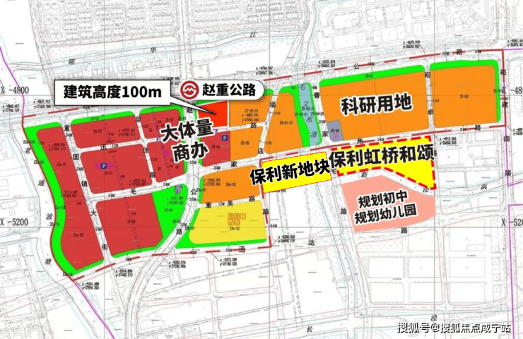 ,其中东南角地块的商办综合体建筑高度达到100米。