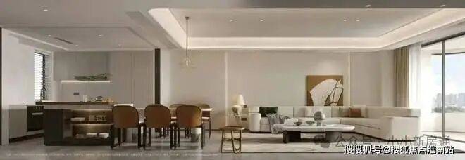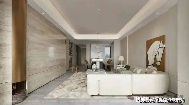 会客空间约有50平,餐客厅一体化足足有近百平,尺度感超强.