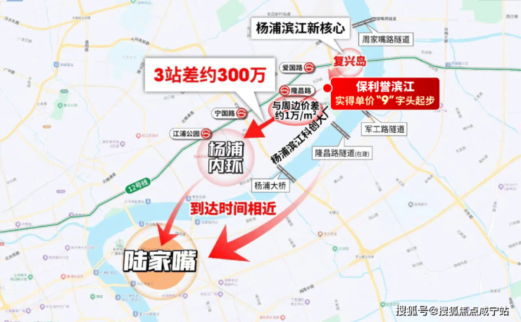 与杨浦内环相比,单价便宜约3万/㎡,价差高达300万,但到陆家嘴的通勤时间相差无几,无需为“内环标签”额外拉杠杆;