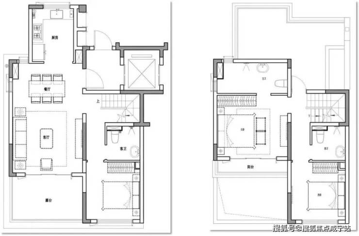 建面约129㎡上叠产品,带两个大露台,拥有非常大的附加空间,接景入室,视野开阔,空间利用率高。