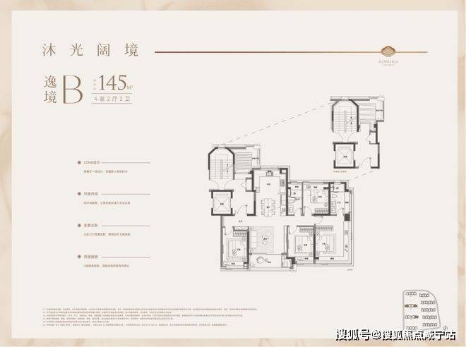 户型特点:4开间朝南,LDK一体化设计,南北通透。客厅面宽达4.3米,外接4.8米长阳台,采光通风俱佳。主卧带270°转角飘窗,主卫也有飘窗赠送。全屋飘窗设计,独立电梯厅,私密性与尊享感强。