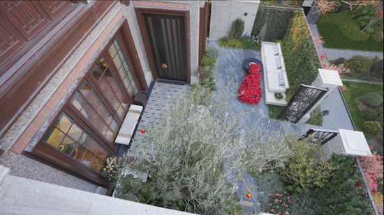 穿过社区大堂,是一片绿意盎然的下沉庭院,围绕下沉庭院设置一步观景露台,将花园生活引入私密领域,营造出静谧的围合感!