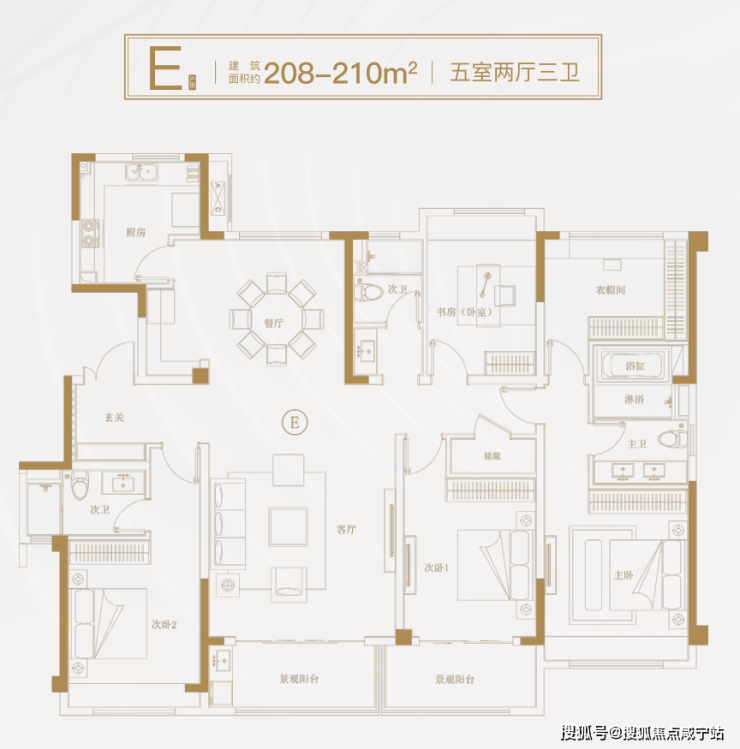 ▶ 约210㎡双主卧套房:独立衣帽卫浴,代际互不干扰3。