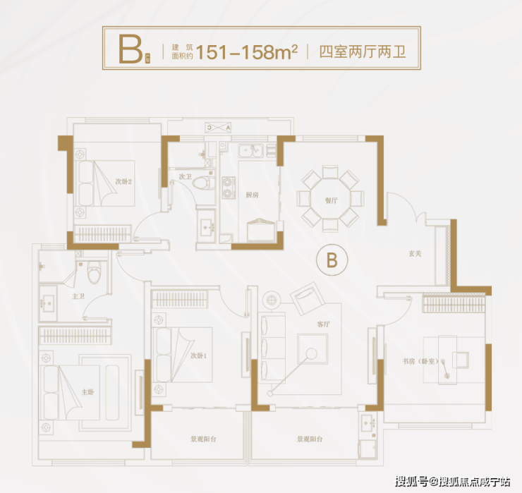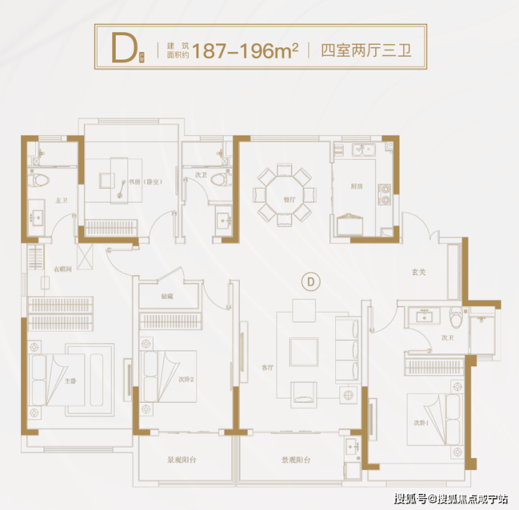 123-210㎡全系改善:4款户型均实现双阳台、全明采光、卧室飘窗设计,主力亮点: