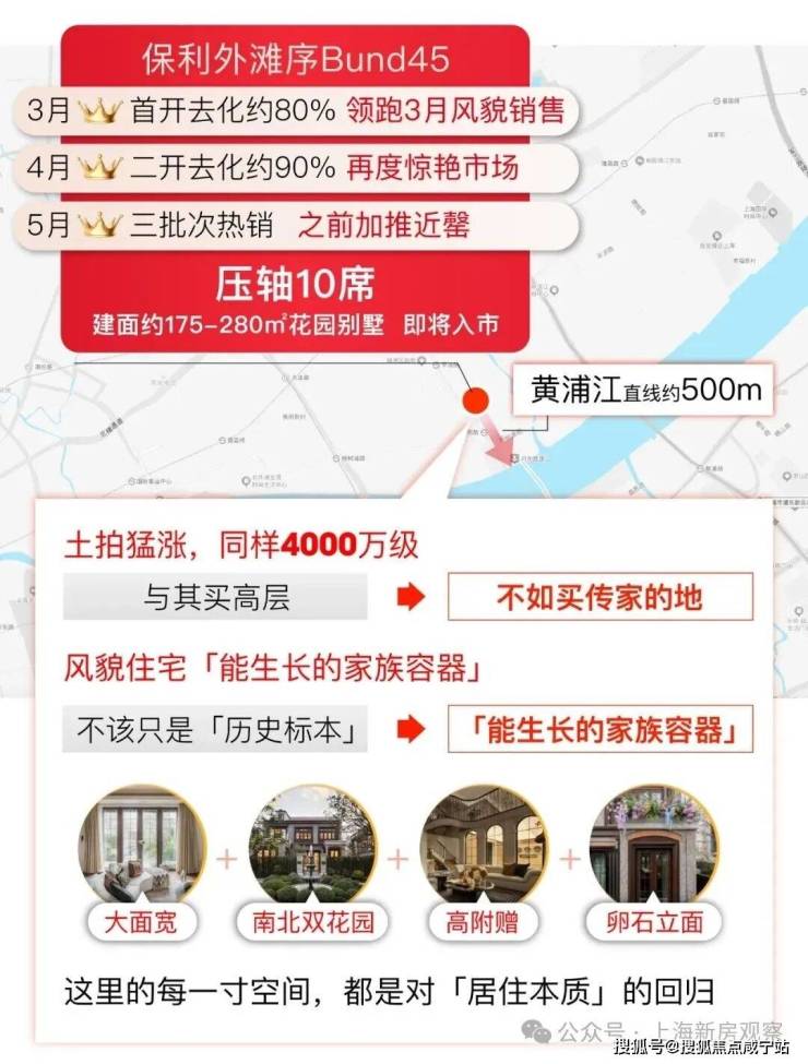杨浦滨江风貌带全新供应,约500米滨江+臻稀风貌+超级花园「保利·外滩序」BUND45少席待藏!建面约175-280㎡风貌别墅,总价约3500万-6000万!售楼处线上火热预约中!